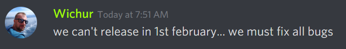 The project's creator, Bartosz aka Wichur is debugging the game, wrestling with it and duct taping it all together. Probably even during the time you are reading this (possibly even in the future). But do not fret, because even if we wouldn't be here cheering for him, he would still work on this game regardless... this is his baby after all. So don't worry, he is dead set at finishing this project. So yes the struggle is real.