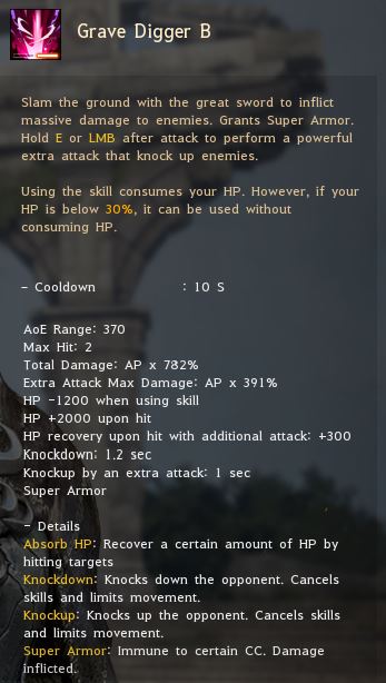 | Grave Digger (E) - Improved so that you can activate an additional attack if you input LMB after using the skill.