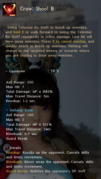 | Crow: Shoo! (E) - Improved the skill to teleport Heilang right behind Ba-Ri and start dashing.