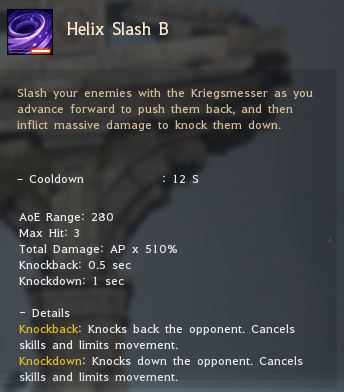 > Target: Damage 500% (Up to 5 strikes, 100% each), Stun for 1.5 sec, Bleeding effect