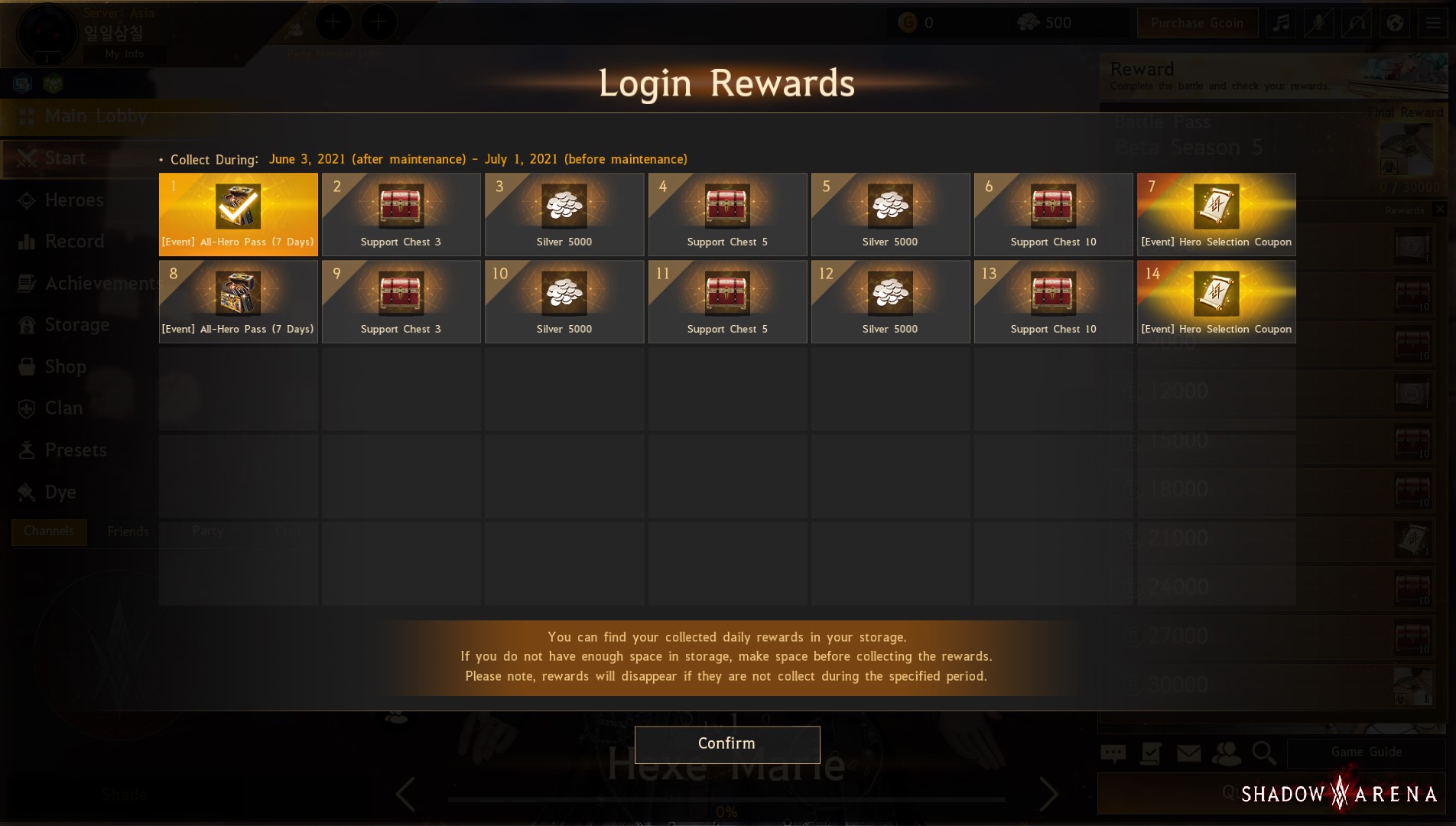 - Rewards not collected within the event period will be deleted during the maintenance on August 5, 2021 (Thu). Please make sure to receive the rewards within the event period.