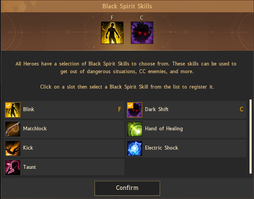 - Changed the design of the Black Spirit Skill selection window. You can now see all of the selectable Black Spirit Skills at once without having to scroll down.