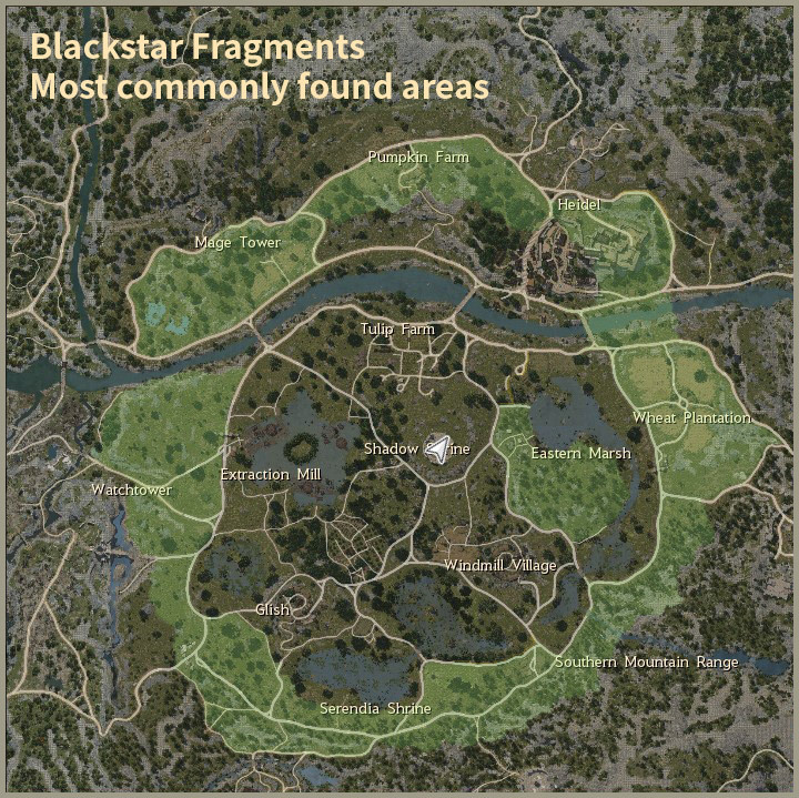 - Blackstar Fragments have a higher spawn rate in the outer areas of the map where there are less monsters.
