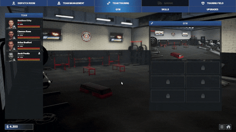 When the mission is done, it is time to take care of your firefighters. There are a few rooms available for your people to use, like the gym or the social room. They serve to recover their health and stamina, improve their skills, and so on.