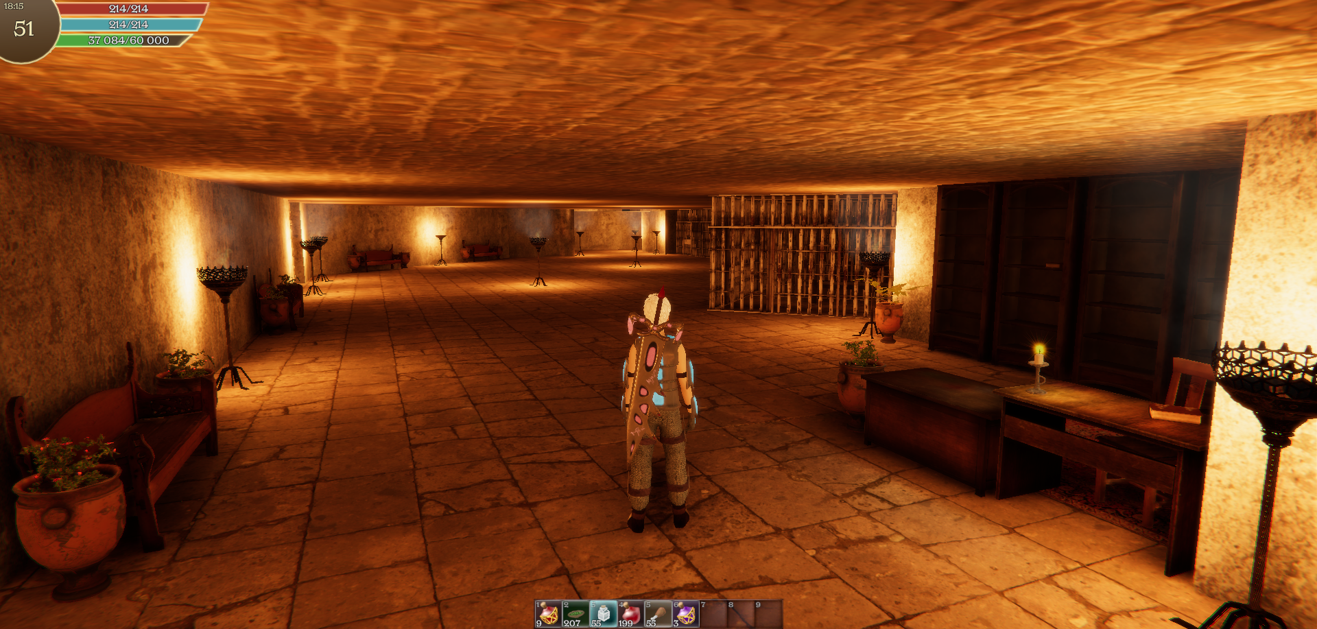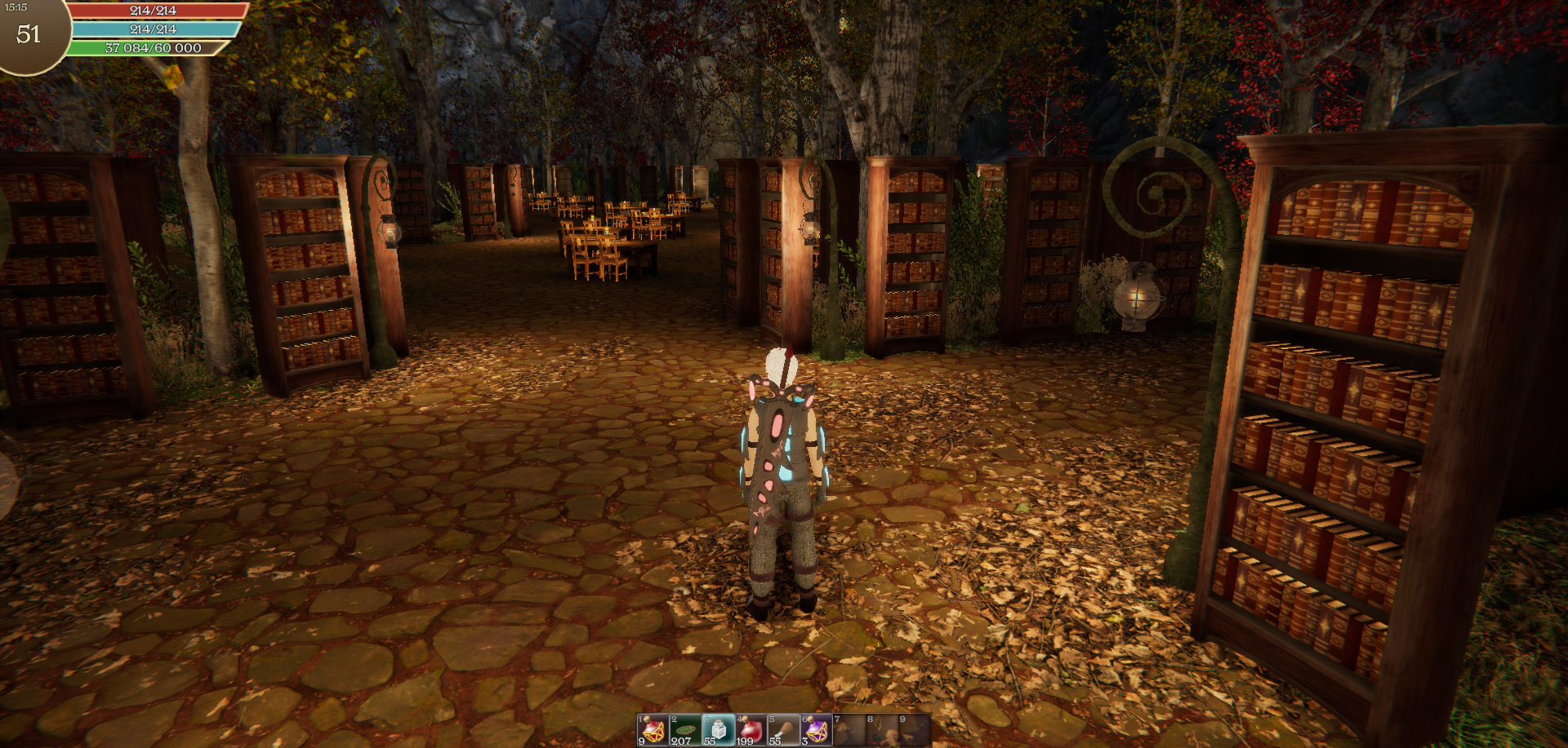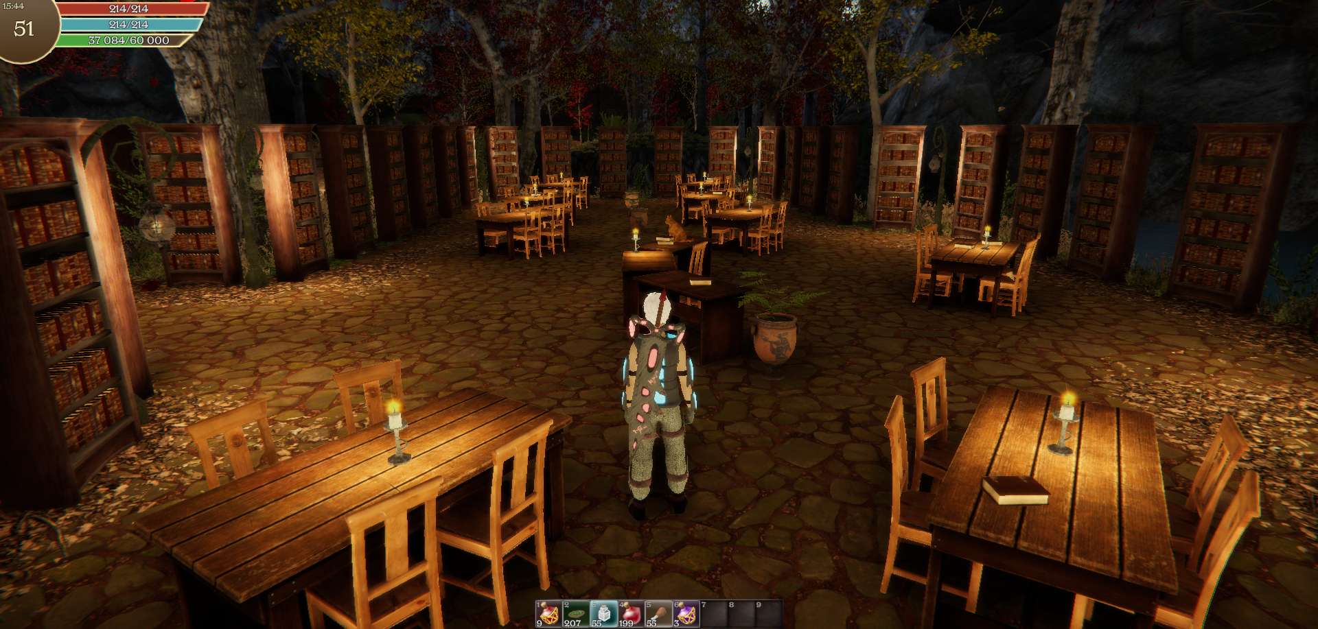 In the old version of the game, the location with the library reduced FPS, this is fixed in the new version using Lightmapping.