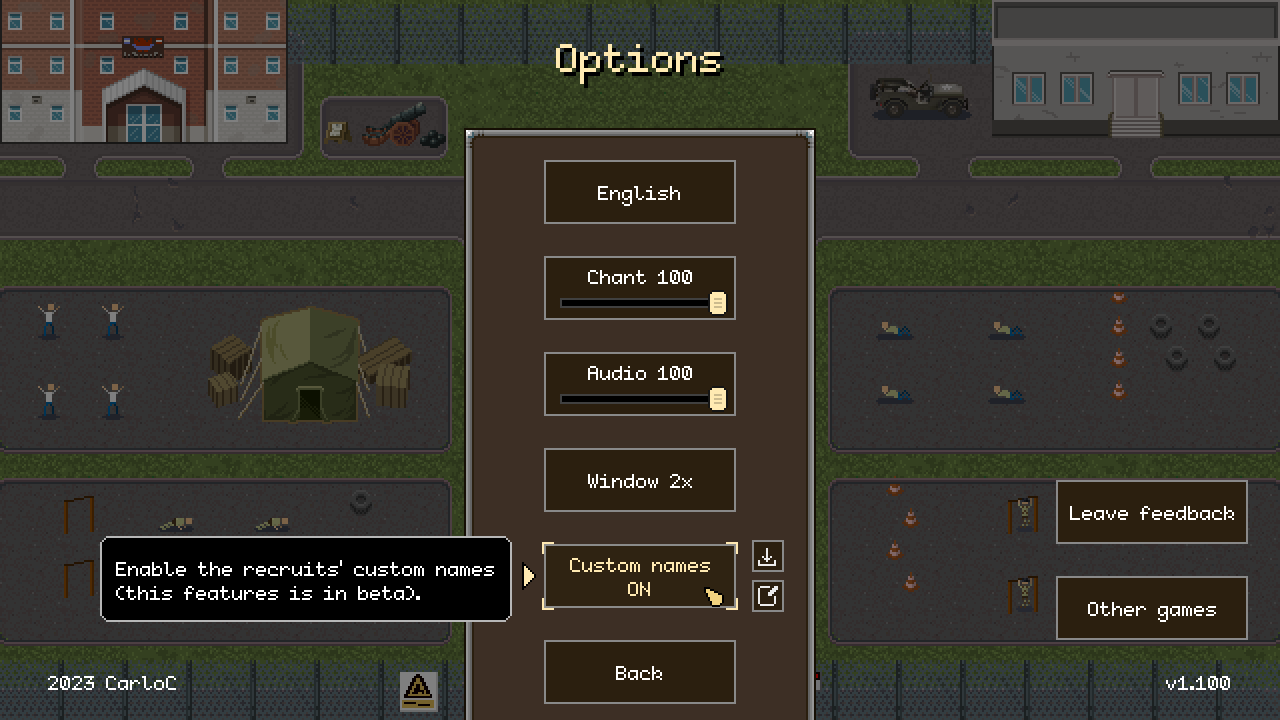 It's now possible to define custom names for the recruits. In the Options menu you'll find two new buttons, one for exporting the template file and the other for importing it. The template is a simple text file with all the names listed.