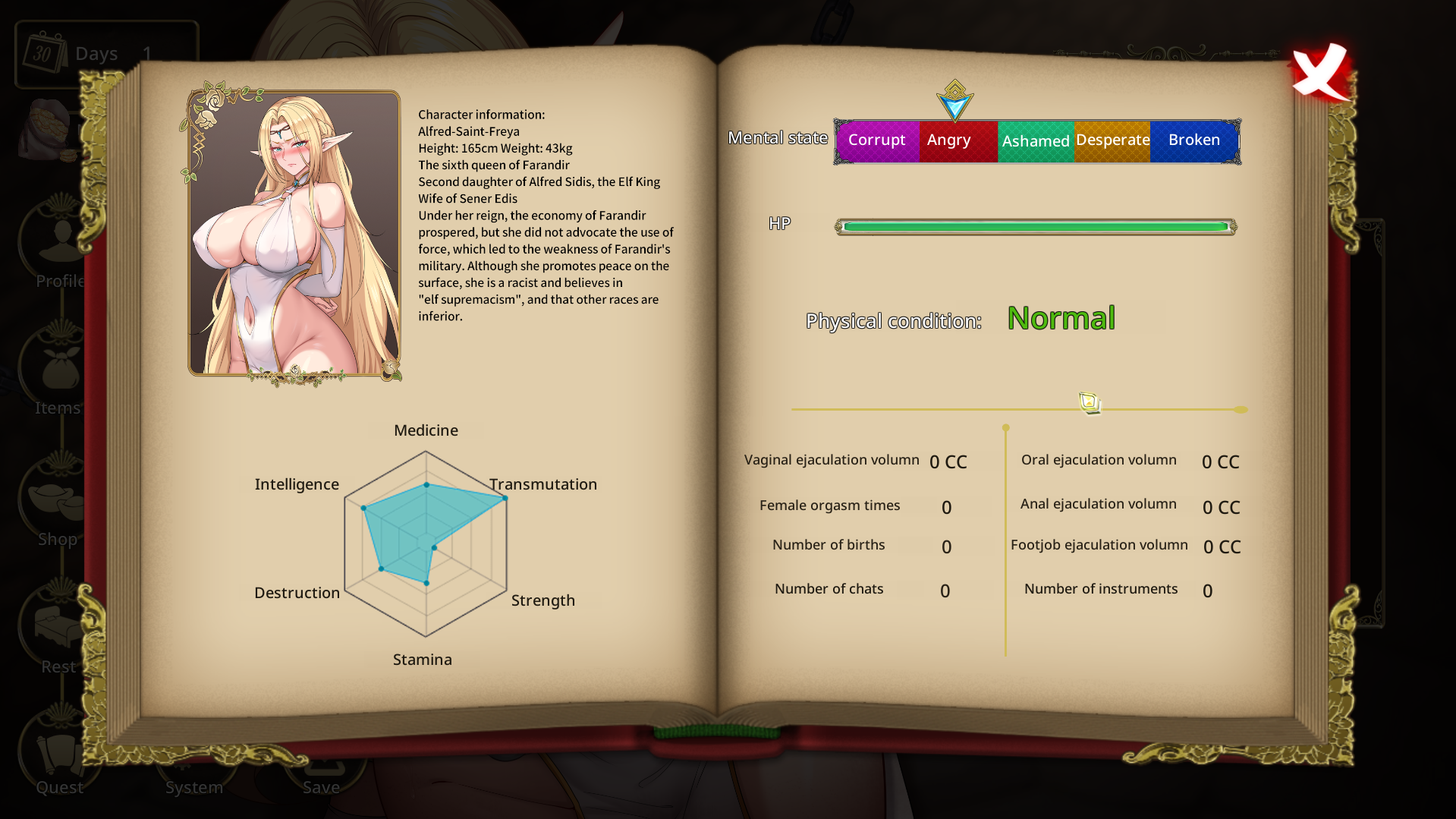 Another core gameplay of this game - interactive mode, we will have 14 sets of interactive mode positions, each set of interactive positions with several dynamic changes! We can touch Freya's tits with our hands, lick her pussy with our tongues, and of course, we can take out our meat sticks and thrust them into Freya, making Freya your plaything! As the story progresses, more positions will be unlocked, and you can purchase items from the shop to abuse and train Freya! All of the interactive actions in Training Mode have their own animations! The total number of animations is expected to reach 200+, and there will also be intracavity perspective to satisfy perspective lovers! All of Freya's conditioning will affect the stats!