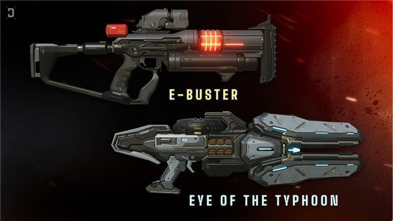 This weapon allows switching between Typhoon Mode and Storm Mode using the aim button. 'Typhoon Mode ' automatically targets enemies within the screen, while 'Storm Mode ' fires a high-damage attack in the direction you aim.