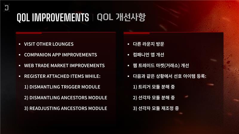 - Web Trade Market Improvements: Planning to introduce searching by selecting desired options and tiers, and a feature where module tiers are displayed by color.