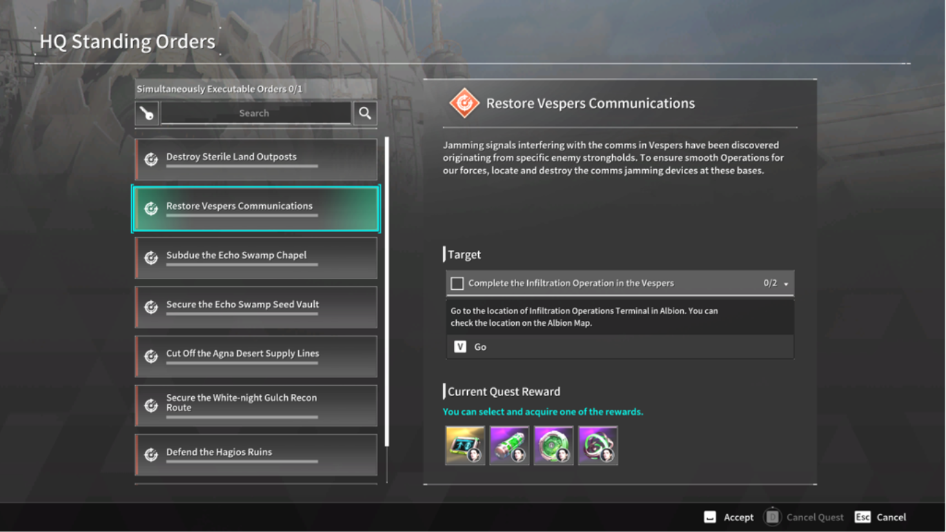 ㄴ Standing Orders are a collection of orders for new Descendants and can be completed at any time.