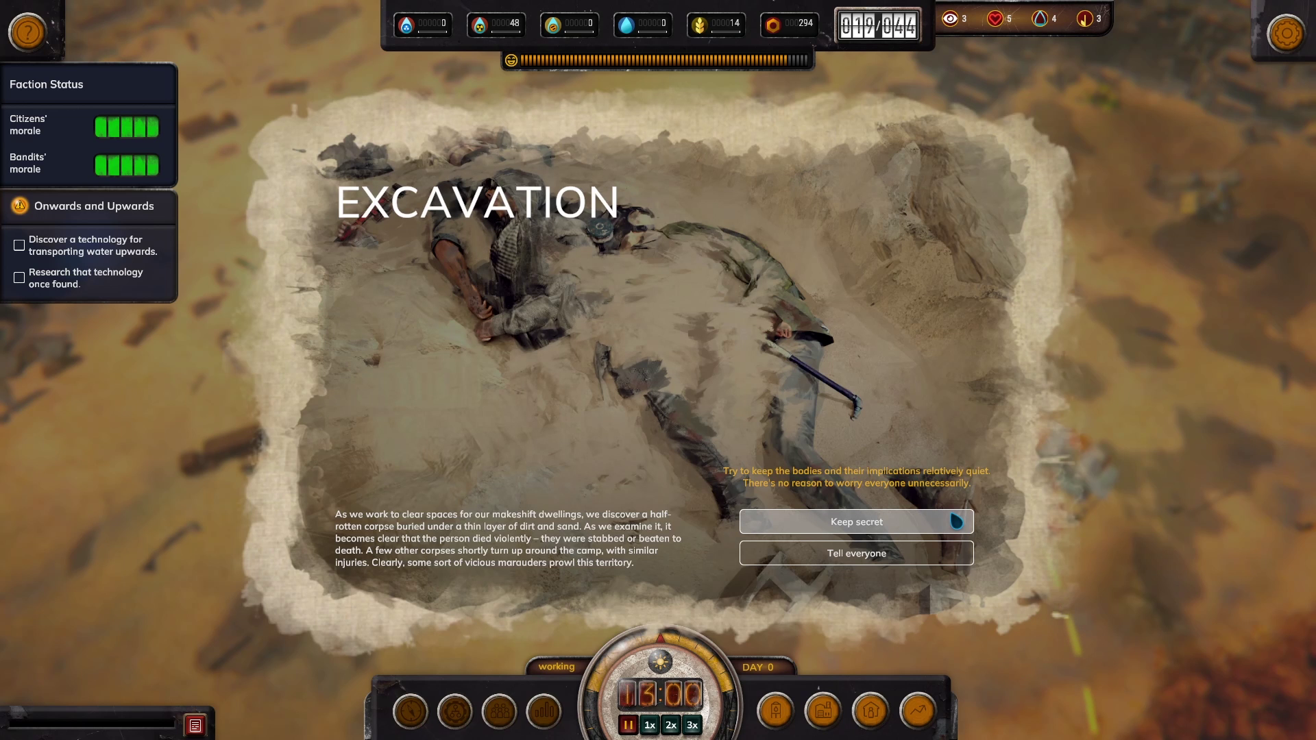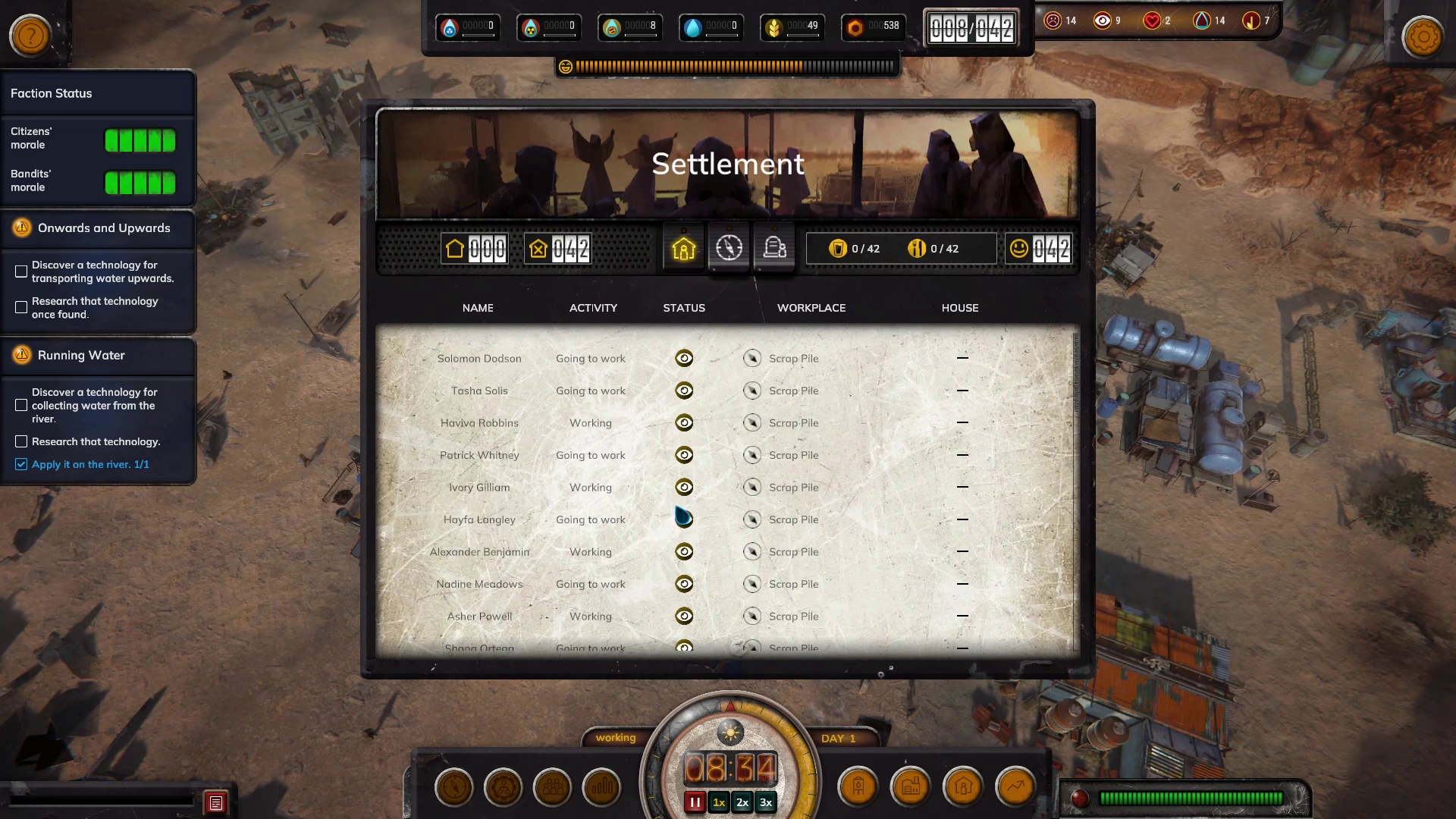 A citizen’s status will update every day at 6 am. So if you see a few citizens abandoning you at the beginning of the day, it’s because their food, water, or housing needs weren’t covered during the last few in-game days.