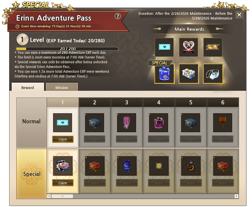 Special Erinn Adventure Pass Support Selection Box x3Open this box to select and receive one of the following items: