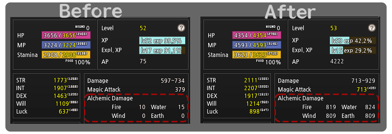 - Empowers the caster for 300 seconds based on the elemental alchemy energy consumed.