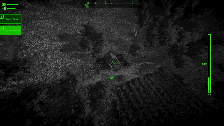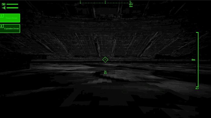 Time to swap to the explosive drone. The drone is detonated with a button press. Then observe the damage after swapping back to the recon drone.
