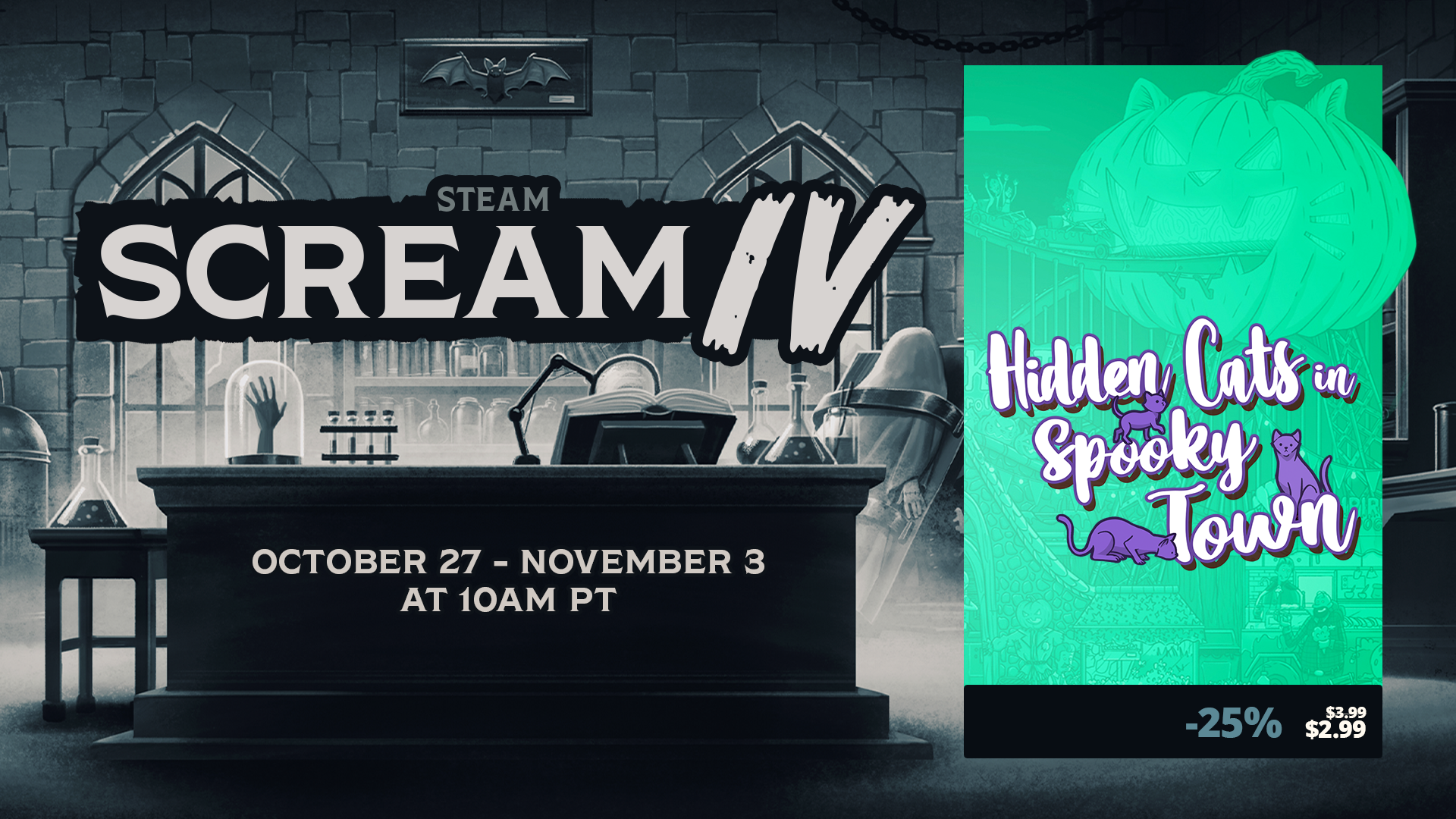 If you already own one of our games, you can even get another one at a discount during the Steam Scream!
