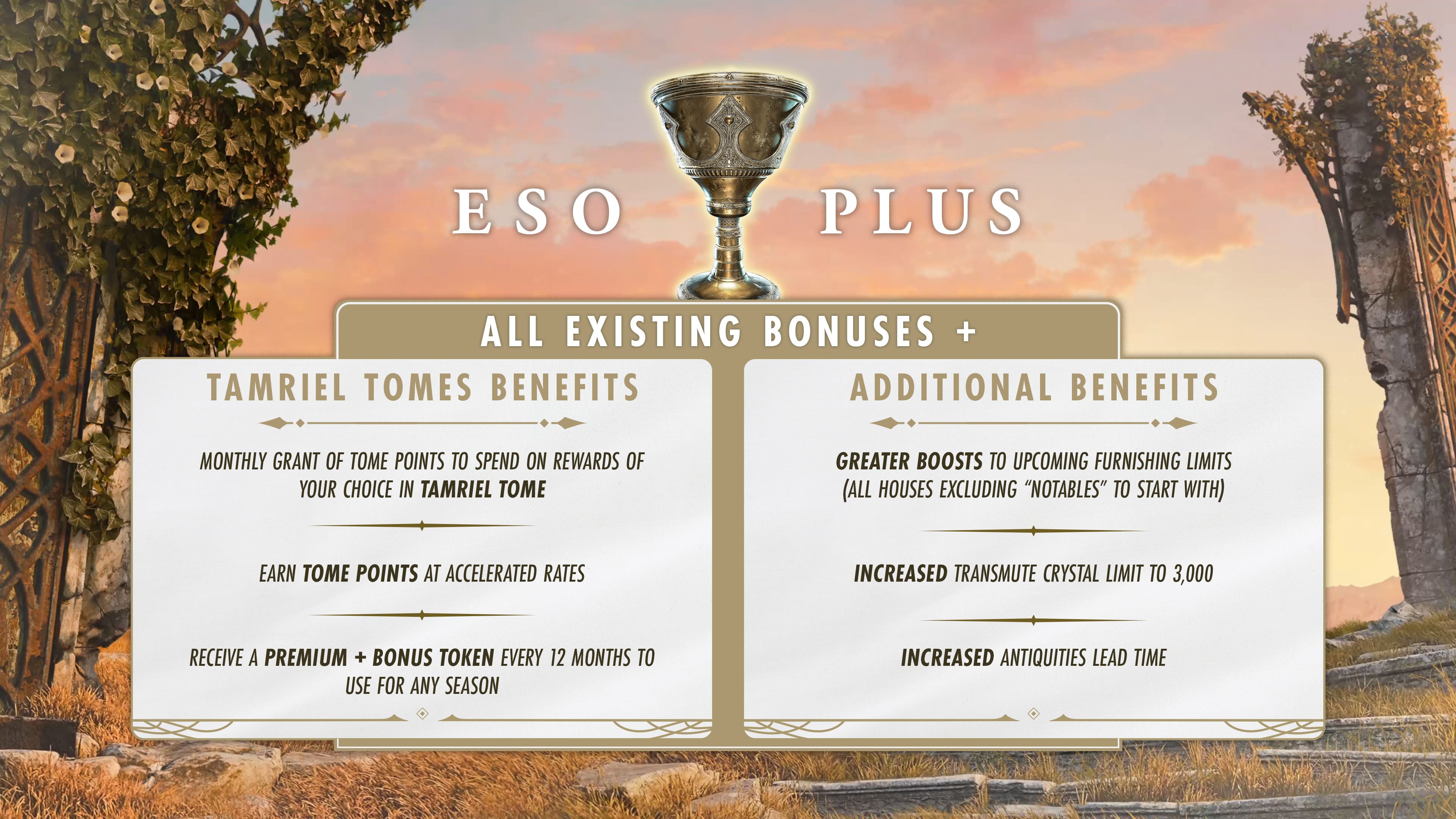 If you have an ESO Plus membership, you also gain certain benefits for a Season’s Tome. These include: