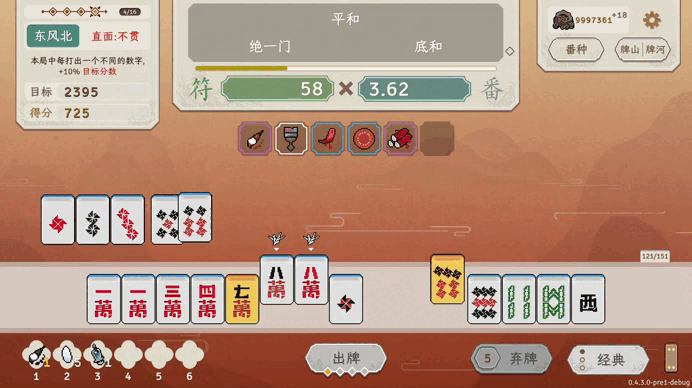 This update brings a Real-time Scoring system. For example, in the combo of Cinnabar Pen and Red Wood, tiles containing red immediately trigger the dyeing and Fan multiplying effects when played. Overall, score changes will now be more immediate and intuitive, helping you adjust your strategy on the fly.