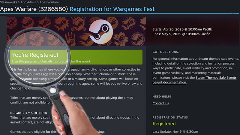 We’re excited to announce that Apes Warfare, the turn-based strategy game with a unique grid-based combat system, will be part of the Wargames Fest! Festival-goers will have an exclusive opportunity to play the Apes Warfare demo, showcasing the game’s strategic depth and humor. Lead your army of cheeky apes through intense tactical battles, and see for yourself why this game is a must-play for strategy fans.