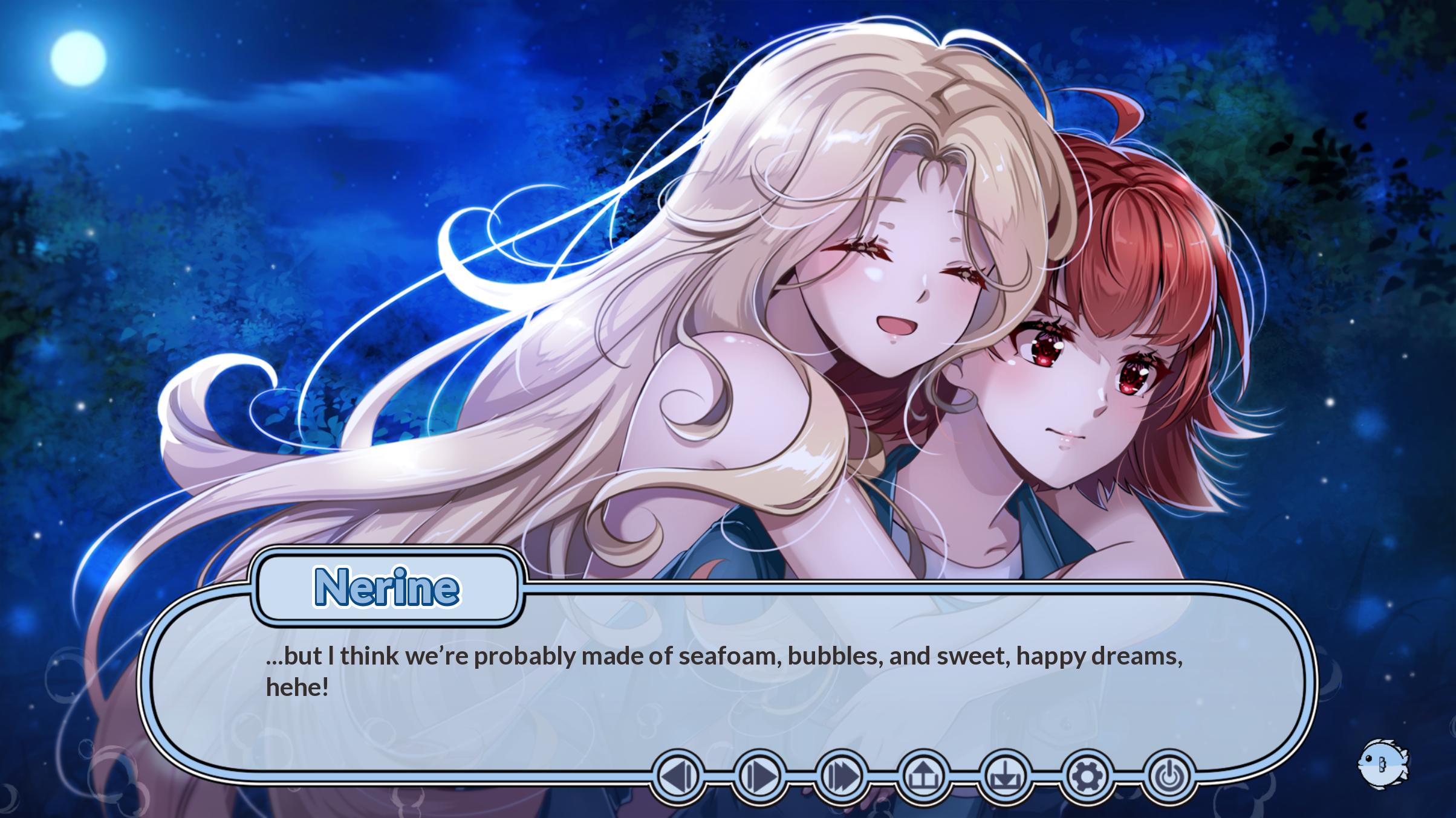 I'm writing a quick post to let you know that I've been hard at work these last couple of months on my cute yuri visual novel feat. a mermaid girl, Out of the Ocean. The VN is very close to being finished, and it's been fully coded and edited save for one ending out of a possible five.