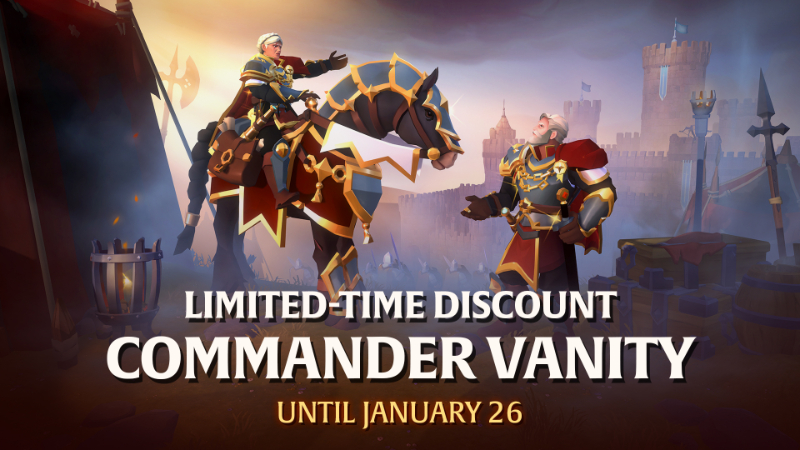 The Commander Vanity Bundle is joining the store lineup, and it launches with a limited-time discount! That’s right, the Commander Vanity Bundle is now available as a standalone purchase for $29.95 on the Albion Online Web Shop, native and Steam ingame stores, and $34.99 on all other platforms. And to mark its arrival, we’re offering a $5 discount for 72 hours only, ending on January 26 at 10 UTC (prices and discount may vary by platform and region).