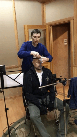 4. Our sound engineer Vadim is setting put the microphone for voice recording: