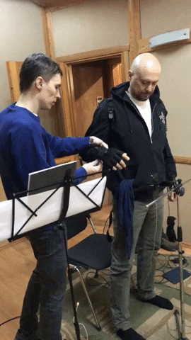 2. Our lead artist Alexandr is preparing the tach for the motion capture: